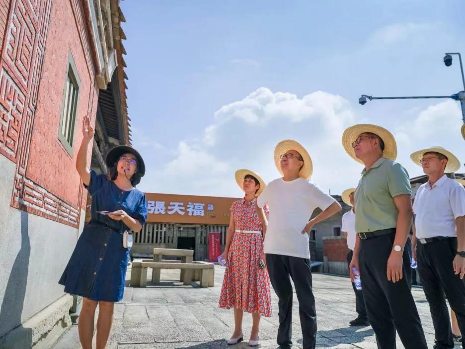 在晉江,潘魯生一行考察了梧林傳統村落。梧林傳統村落形成于明洪武年間,占地約1000畝,保留著明代百福墻、清代閩南傳統紅磚大厝、近現代哥特式和羅馬式洋樓、番仔樓等各式風貌建筑,有“華僑建筑博物館”之美稱。潘魯生考察了村內的藏海厝、朝東樓、德越館、三棟厝等,并觀看掌中木偶表演、剪紙作品展以及黑金推瀝金畫展示。他對梧林傳統村落的建筑工藝和風貌給予了高度評價,并強調了傳承和弘揚民間技藝的重要性。