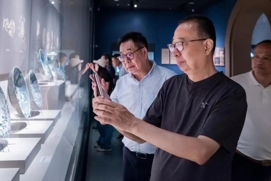 在漳州博物館,潘魯生一行參觀了漳州窯陶瓷藝術、漳州非遺雕刻藝術等精美館藏。漳州市博物館為國家二級博物館,為目前福建省內地市博物館中單體建筑(體量)最大的博物館。現有館藏文物11098件,其中一級文物81件,二級文物216件、三級文物1456件。