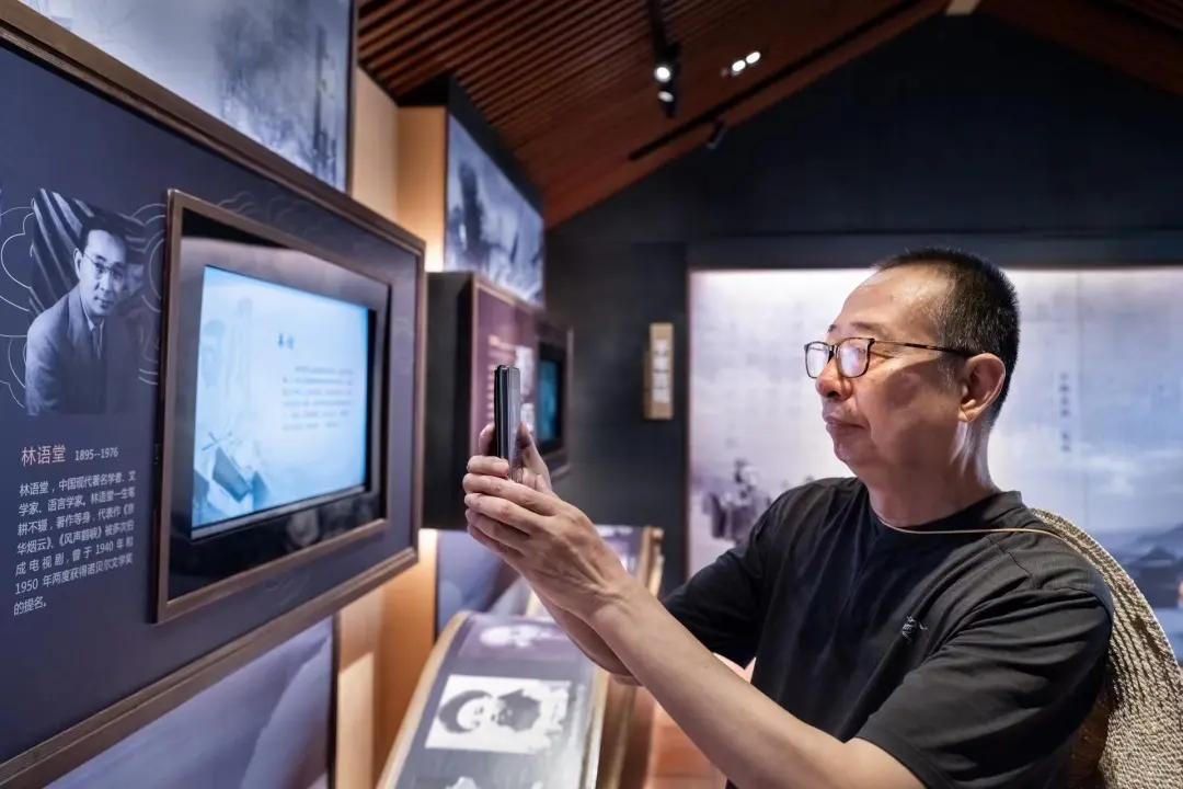 在漳州古城記憶館,潘魯生饒有興致地考察漳州古城的悠久歷史與文化底蘊。該館總面積約1000平方米,館內分為印象古城、名勝古跡、非物質文化遺產、古城故事、古城規劃、古城生活、聲光電互動演繹等七個展廳,運用多媒體現代視聽技術,通過視頻短片、全息投影、互動屏等平臺,結合圖文介紹及實物展品,全面展示漳州古城在城郭演變、文物古跡、非遺人文、保護規劃建設等方面的歷史變遷。
