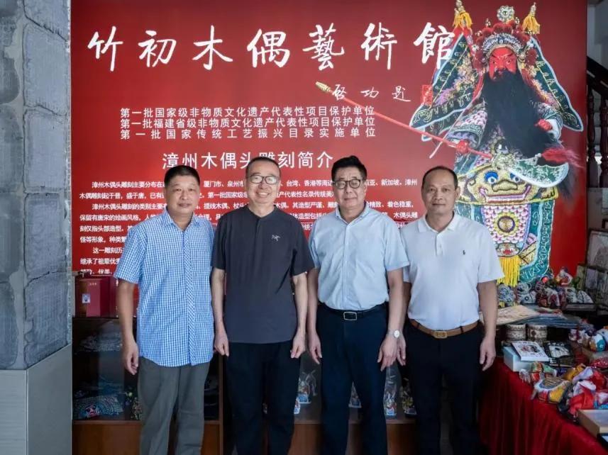 在漳州市竹初木偶藝術館,潘魯生詳細了解漳州木偶頭雕刻。漳州木偶雕刻已有近2000年歷史,是第一批國家級非物質文化遺產代表性項目(傳統美術類),第一批國家傳統工藝振興項目。竹初木偶藝術館由著名木偶雕刻藝術家,徐家木偶第六代傳人徐竹初創立,是一家收藏、展示古代、當代木偶頭雕刻藝術作品的專業博物館,館藏作品曾在中國國家博物館,中國美術館、國家大劇院及美國、俄羅斯、德國、意大利、法國、新加坡等100多個國家巡回大展,被稱之為“東方藝術珍品”,是第一批國家級非物質文化遺產代表性項目保護單位。