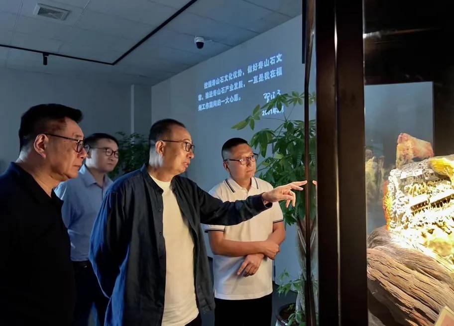 潘魯生一行來到了福州的楊明雕刻藝術館。這里是壽山石雕藝術展示、名家交流的重要平臺,福建工藝美術大師楊明及其團隊的作品展現了壽山石雕的獨特魅力,藝術館還承擔著傳承和發揚傳統文化的使命。