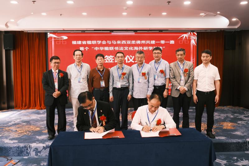 活動中,福建省楹聯(lián)學會與馬來西亞柔佛州攜手共建“一帶一路”全球首個“中華楹聯(lián)書法文化海外研學基地”。由福建省楹聯(lián)學會蕭閩森會長與馬來西亞柔佛州昔加末縣愛群華小林道義校長簽約共建“一帶一路”首個“中華楹聯(lián)書法文化海外研學基地”戰(zhàn)略合作協(xié)議,促進中華優(yōu)秀傳統(tǒng)文化在馬來西亞等“一帶一路”國家傳播與推廣。