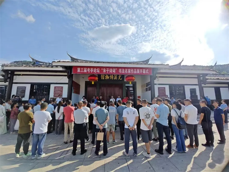 10月16日,第三屆考亭論壇“朱子詩詞”書法名家作品展開幕儀式在尤溪縣朱子文化園隆重舉行。福建省書法家協(xié)會副主席兼秘書長黃坤生、三明市文學藝術(shù)界聯(lián)合會主席紀任才、中共尤溪縣委常委宣傳部長邱建蓉、福建省書法家協(xié)會副主席,廈門大學博士生導(dǎo)師陳勝凱、福建省書法家協(xié)會副主席,三明市書法家協(xié)會主席連長生、臺灣海峽兩岸朱子文化交流促進會創(chuàng)會理事長朱茂男、臺灣海峽兩岸朱子文化交流促進會理事長張雙土、書法家楊劍、周繼中、朱紹儉等專家領(lǐng)導(dǎo)及海峽兩岸書法同仁近二百余人參加了活動。開幕式由尤溪縣人民政府副縣長蔡曉斌主持。