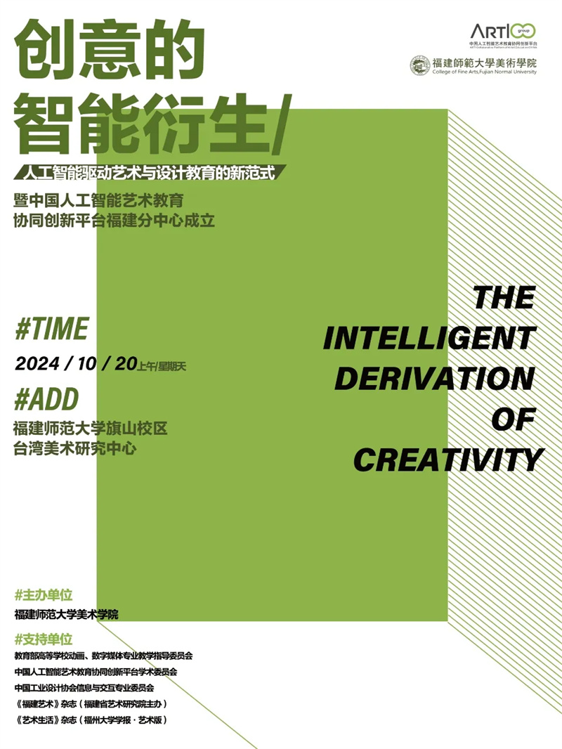 2024年10月20日上午,“創(chuàng)意的智能衍生:人工智能驅動藝術與設計教育的新范式”學術論壇暨中國人工智能藝術教育協(xié)同創(chuàng)新平臺福建分中心成立儀式在福建師范大學臺灣美術研究中心舉行。