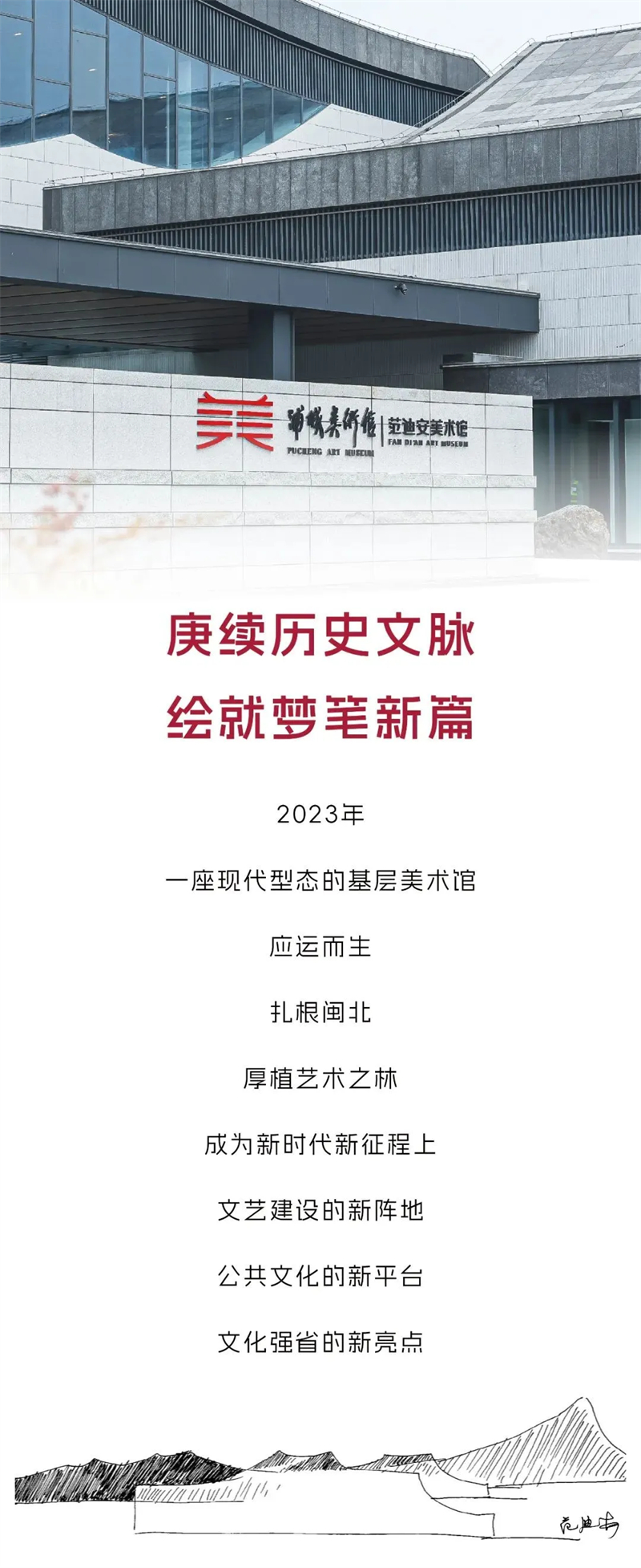 一年之際,浦城美術館/范迪安美術館滿懷感激之情,衷心感謝各方給予的鼎力支持和觀眾朋友的深情厚愛。展望未來,我們將堅定不移地以習近平文化思想為引領,深刻踐行新時代賦予的文化使命與責任,繼續扎根浦城,積極服務南平和福建地區,面向全國和世界,努力打造人民群眾欣賞美術佳作、提升文化素養的藝術殿堂,為促進基層美術館建設提供樣板標桿,為推動文化事業高質量發展貢獻力量。