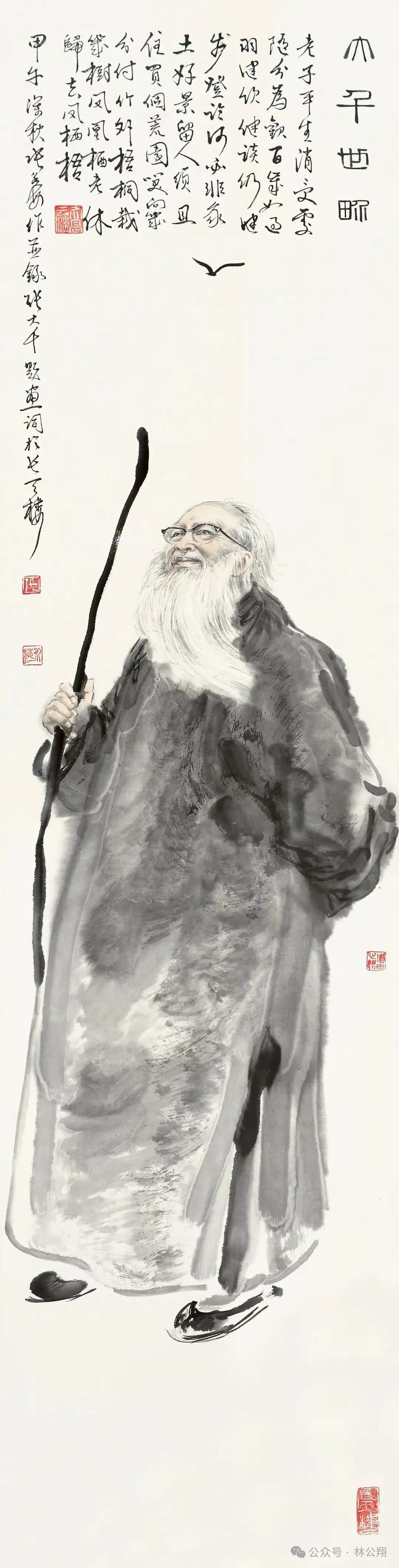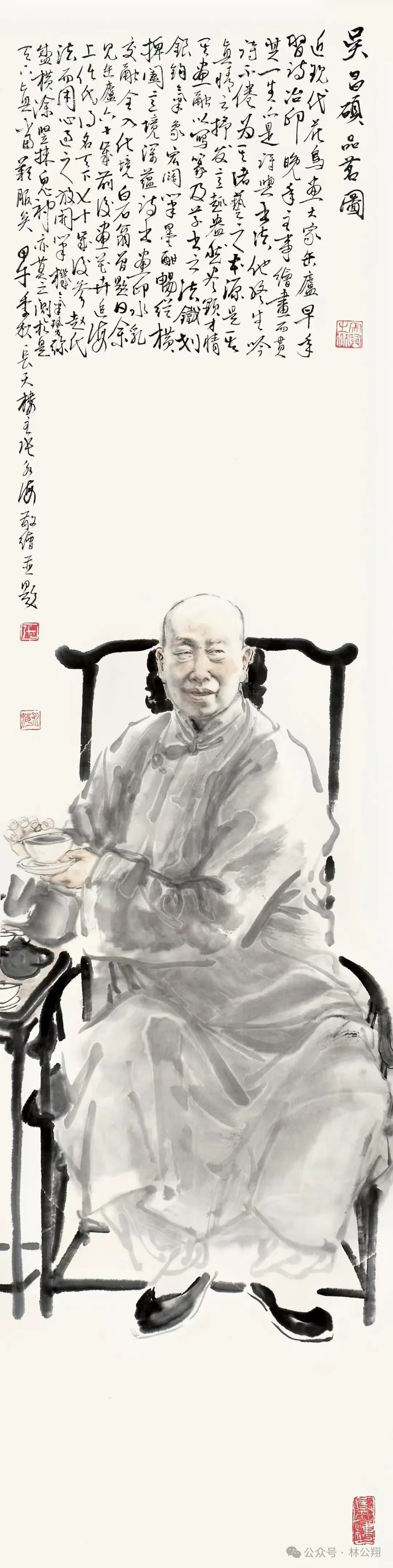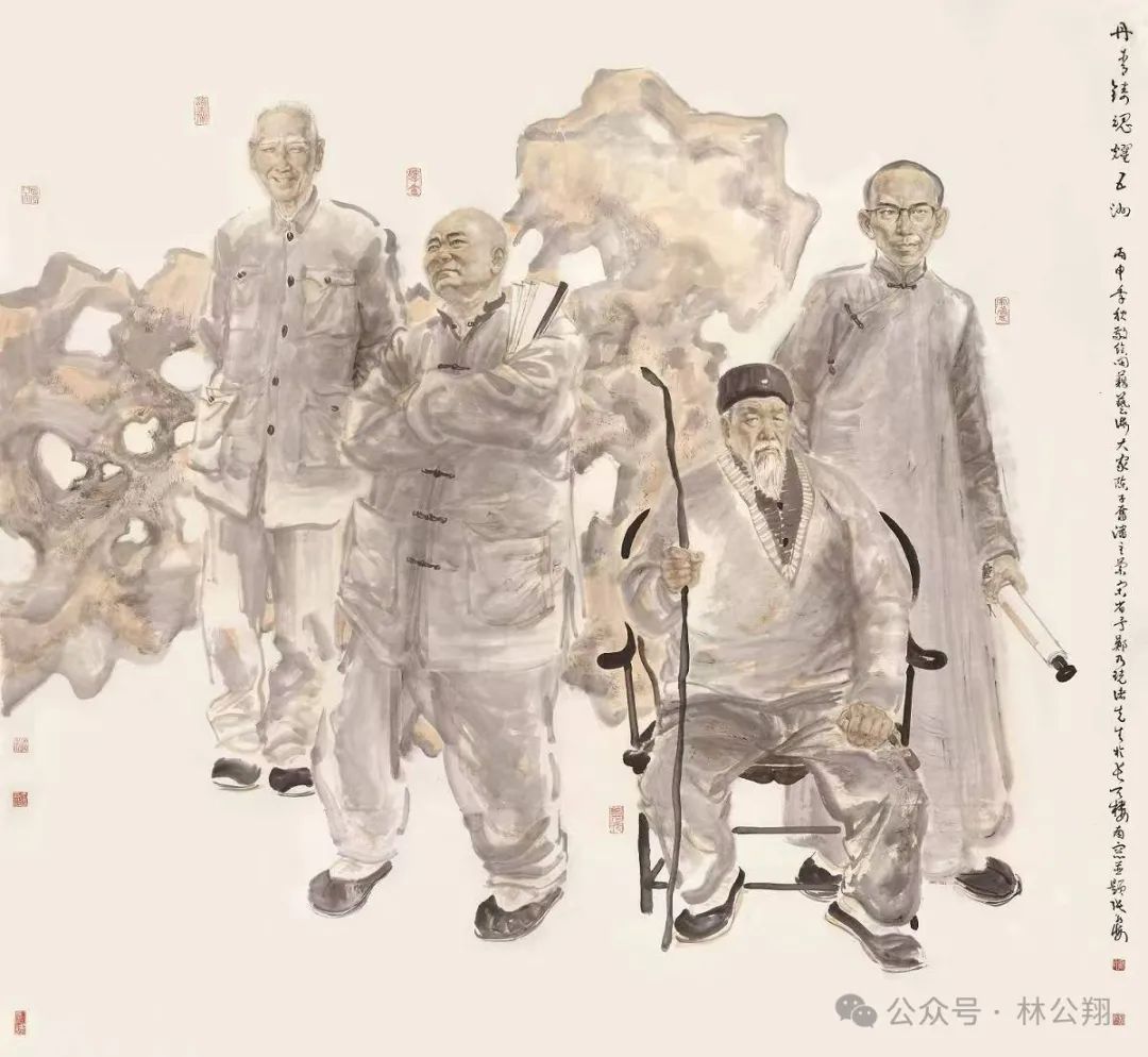 對水墨人物畫,張永海情有獨鐘,在多年的水墨人物畫創作與教學實踐中,張永海深知,水墨人物畫經過幾代人的學理探索和創作積累,已與古代的水墨人物畫有很大的區別,在人物造型上有本體的推進。要畫好水墨人物畫,必須進行結構性的探索。他認為,中國繪畫的主流是水墨寫意畫,而水墨寫意畫的主流應是水墨人物畫,現代水墨人物畫既是傳統的,又是現代的。真正的現代水墨人物畫應有自我的筆墨,不為傳統的筆墨程式所囿。他的作品畫路寬廣,題材多樣,但以人物畫為主,他畫《林語堂》《八大山人》《大千世界》《弘一法師》《吳昌碩品茗圖》,他畫《丹青鑄魂耀五洲》(陳子奮、潘主蘭、宋省予、鄭乃珖),他還畫他身邊熟悉或不熟悉的朋友、學生。這些作品對人物的刻畫惟妙惟肖,無論從筆墨造型,還是表達內心感受,都別出心裁。他始終相信,看事物的角度往往比表現事物的方法更重要,獨特的視角必然產生獨特的方法。一幅作品最為核心的東西既不是形式問題也不是內容問題,而是一種精神的需要,是一種生命狀態。這種東西是任何語言都難以描述的。