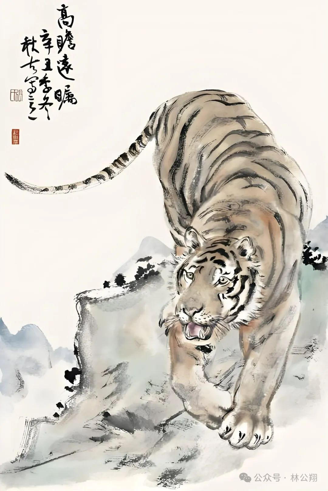 人稱畫壇“鬼才”的黃永玉先生對生肖畫情有獨鐘。上世紀八十年代,中國郵政發行了由黃永玉先生設計的首輪生肖猴票,驚艷國人。到現在,這枚猴票成了集郵界的神話,從當時的8分錢面值到如今價格暴漲。黃永玉先生的生肖畫與眾不同,他以漫畫的方式入畫,他筆下的生肖夸張、逗趣、可愛。例如他畫過各種各樣的老虎,可愛的老虎在他的筆下配以幽默的文字,令人拍案叫絕,意味深長。在水墨動物畫中,黃永玉先生喜歡用流暢的線條來概括形體結構的關鍵部位以及它們之間的關系,再輔以墨色,填彩。他筆下的動物,造型奇特,神態逼真,憨態可掬,表現出了天真爛漫的童真和獨具現代審美的藝術特色。