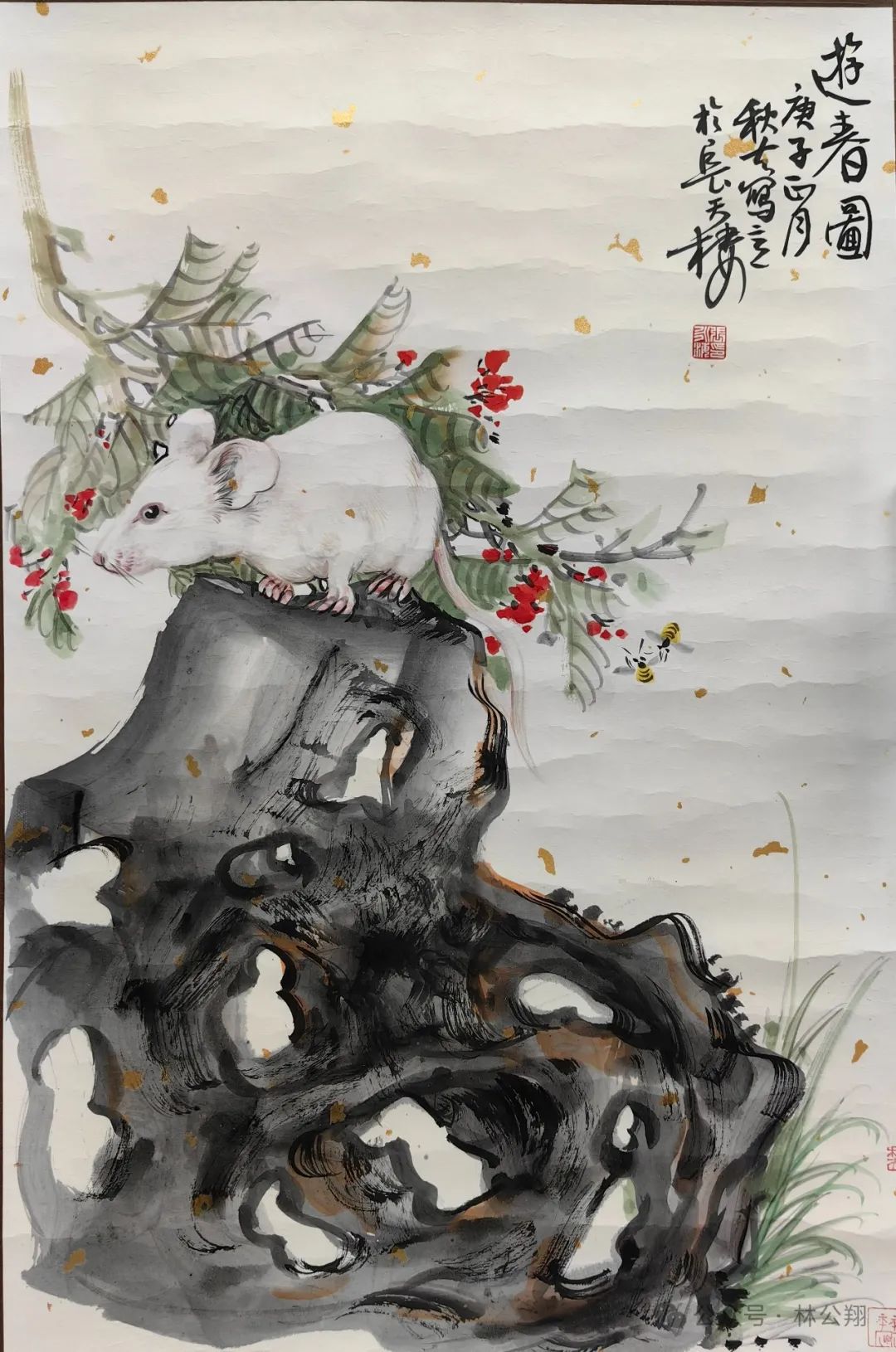 近年來,張永海在生肖畫領域進行了大膽探索。每年的年終或春節前,他都會畫一些掛軸畫贈送給身邊最要好的朋友,我有幸成為其中的“受益者”。這些生肖畫的題材無不是當年的生肖,龍、虎、馬、蛇、兔或豬、狗、牛、羊、雞、鼠等,在永海的筆下,這些動物界的精靈被擬人化,被賦予人格化的無窮魅力。