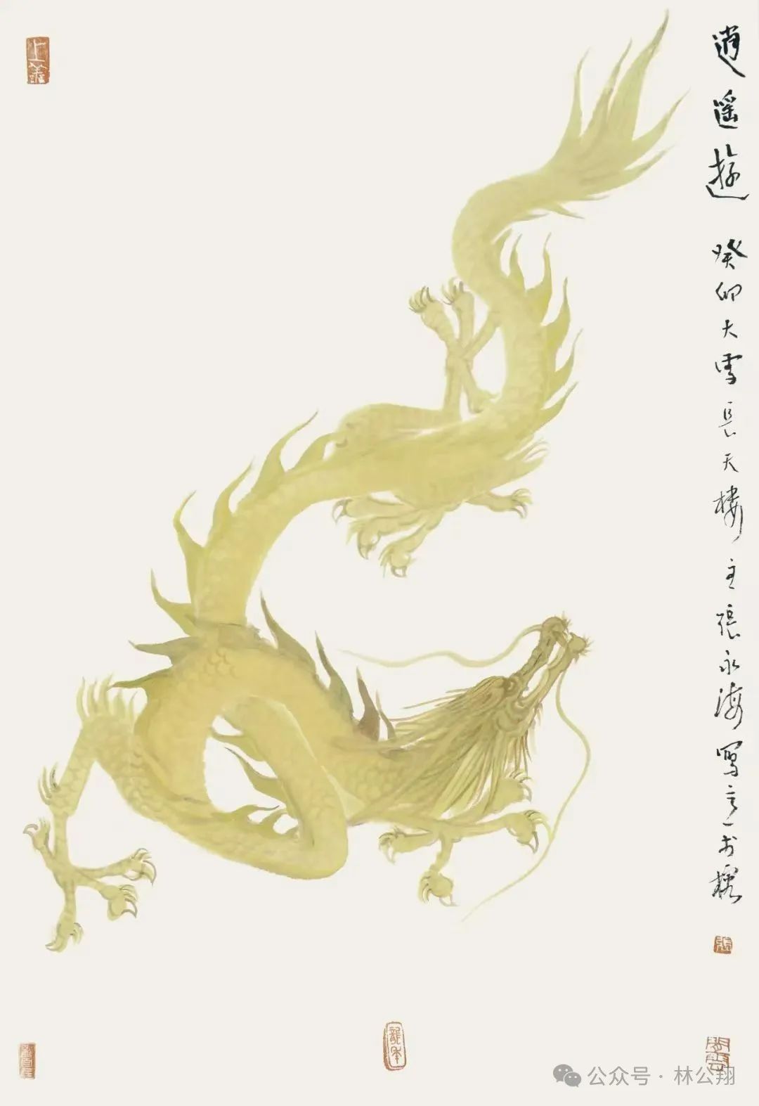 對繪畫題材的限制或對某種形式因素的自我約束對藝術表現力的提升有時是致命的,因為“有限性”會限制一個人的創造潛質。而當一位畫家突破某種限制而走入一片“新境”時,其內心便會激發出強烈的“創作”欲望,思維會變得異常活躍。生肖畫之于永海即是對題材限制的突破,他讓永海去除生肖畫約定俗成的表面敘事模式,而從真善美的角度研究事物的內在本質,不刻意在那些與本質無關的形式花樣上浪費時間。例如,在甲辰龍年他畫的生肖龍。在中國傳統文化中,“龍”是尊崇、吉祥、騰飛、奮進的象征,中華民族以“龍”為圖騰。龍,在畫面上很難表達,但在永海筆下,龍卻表現出多姿多彩的造型,他以自己的理解,運用不同技法,創作出風格各異、精彩紛呈的作品,展現了龍的風采,吐納了龍的氣勢,傳承了龍的精神。