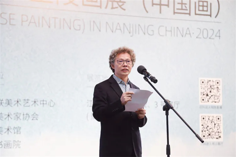 受中國美協分黨組書記、駐會副主席馬鋒輝委托,陸慶龍代表中國美協致辭,他介紹了中國百家金陵畫展相關情況,指出本次參展作品,都是藝術家們精心繪制的作品,是時代精神的生動寫照,體現了傳統技法與現代理念的巧妙融合,為群眾呈現了一場視覺與心靈的雙重盛宴。希望中國百家金陵畫展的舉辦能夠繼續秉持初心,篤力前行,進一步激發廣大美術工作者的創作熱情,創作出更多體現中國精神、勇擔時代使命的精品力作。
