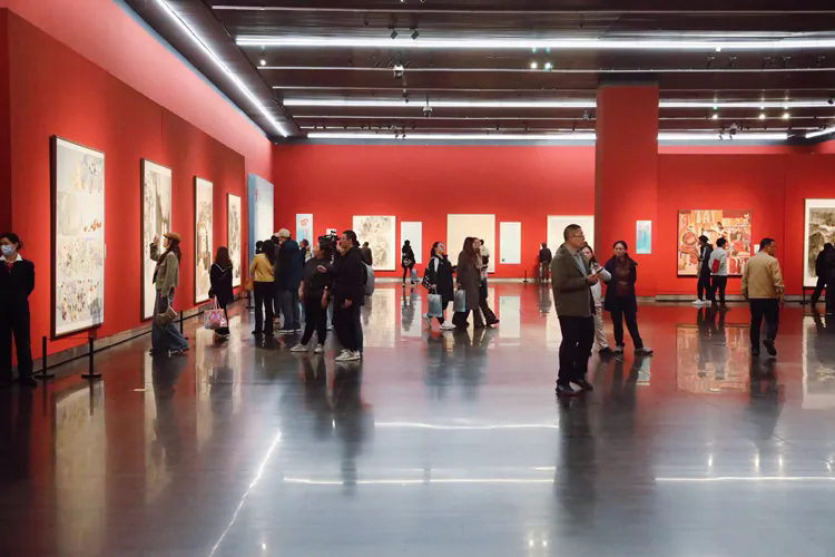 本屆展覽共征集作品7129件,入選展出作品100件,其中包括典藏作品10件、收藏作品10件。這些作品主題突出、形式新穎、風格鮮明、技法嫻熟,守正創新,展示出中國畫獨特的審美力量和文化深度,充分體現了廣大中國畫作者的家國情懷和藝術追求。