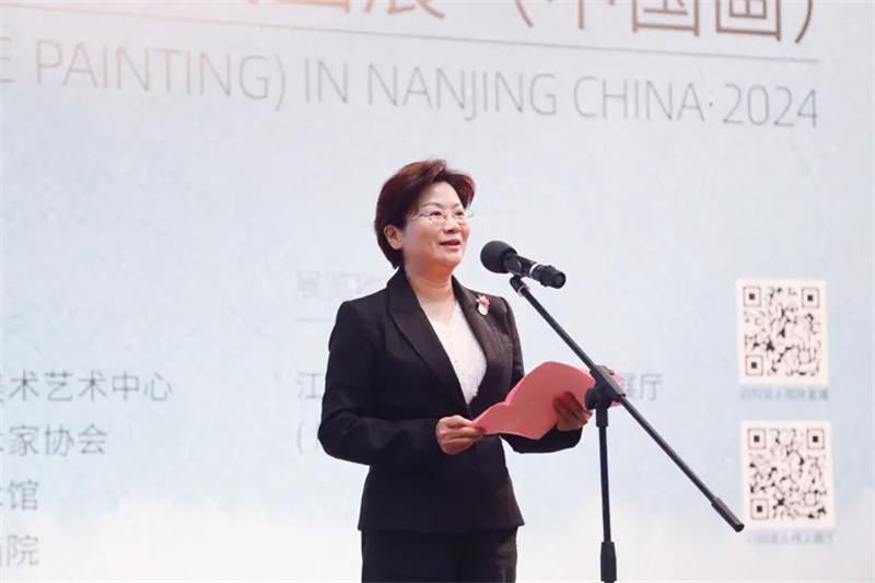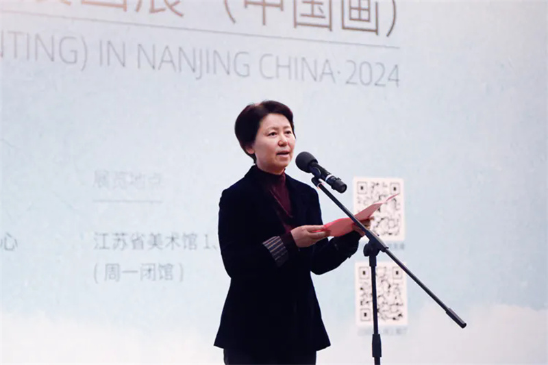 常勝梅在致辭中向入展藝術家表示熱烈祝賀。她指出,中國百家金陵畫展將創作實踐與理論研究相結合,將作品評選和人才推介相統一,選拔美術創作人才,呈現時代變遷畫卷,充分滿足了人民群眾高品質的精神文化需求。本屆展覽強調中國繪畫的藝術精神,著力刻畫中華大地的盛世圖景,為人民群眾奉獻了一場文藝盛宴,展現了中國畫在當代煥發的新光彩。希望廣大美術工作者在習近平文化思想的指引下,繼續用筆墨語言講好中國故事,深深扎根生活沃土,汲取中華優秀傳統文化的養分,為人民揮毫,為時代畫卷,創作出更多具備歷史厚度、文化深度、時代力度的精品力作,為中國文藝事業的繁榮發展作出新的更大貢獻。