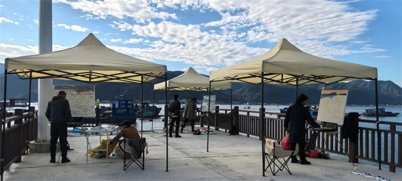 新中國建立以來,海岸建設(shè)日新月異,海洋文化創(chuàng)新發(fā)展,海疆面貌發(fā)生了深刻的巨大變化。習(xí)總書記高度重視海洋強國建設(shè),多次對海洋強國建設(shè)作出重要指示批示,強調(diào)要關(guān)心海洋、認識海洋、經(jīng)略海洋。寧德是福建省大陸海岸線最長的城市,海岸線長度、海域面積均占福建省的三分之一。寧德市蕉城區(qū)海岸線長211公里,海域面積280平方公里,海洋資源稟賦優(yōu)越,海洋文化源遠流長。參與活動的油畫家們分別在寧德市蕉城區(qū)的三都澳、九都鎮(zhèn)九仙畬族村、云氣村、貴村、漳灣鎮(zhèn)鰲江村、城南鎮(zhèn)金蛇頭網(wǎng)紅村等地采風(fēng)寫生,用手中的畫筆描繪絢麗多彩的山海風(fēng)光,表現(xiàn)興旺蓬勃的社會景象,刻畫觸動人心的溫馨場景。