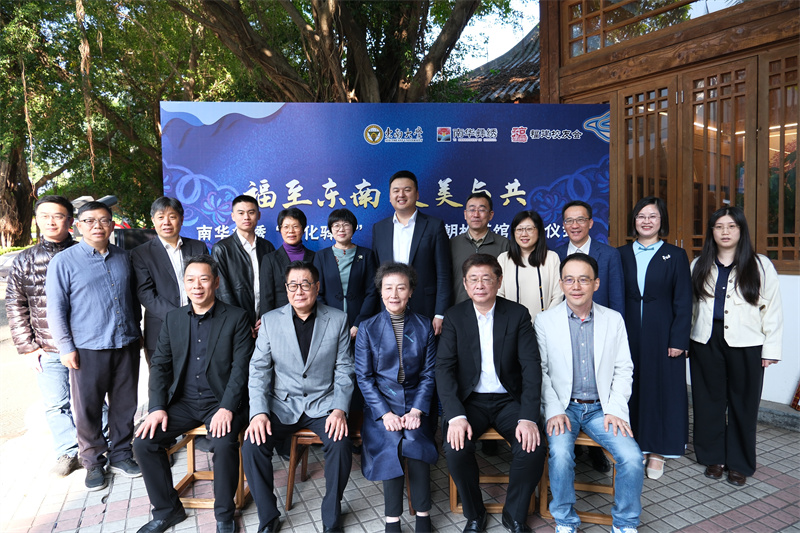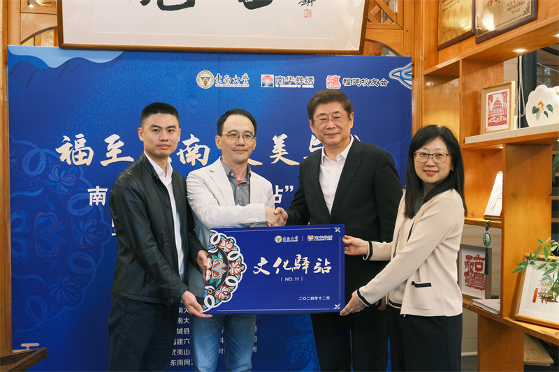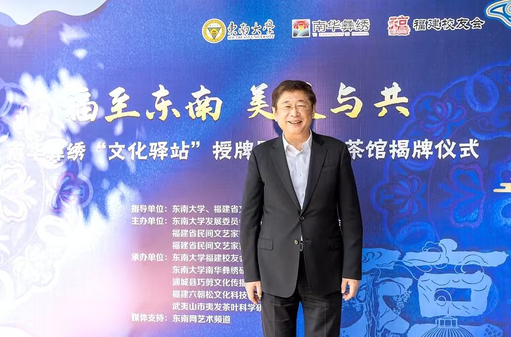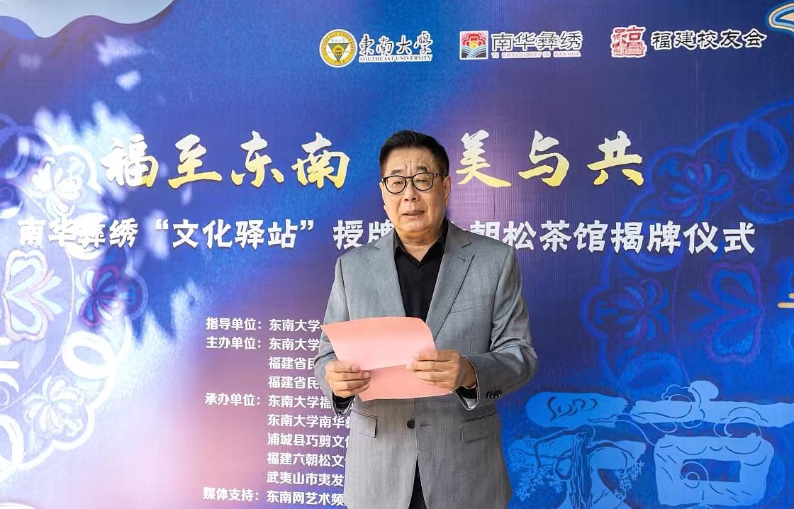 東南網藝術頻道12月6日訊(本網記者 馮韻 通訊員 陳煜華)福至東南,美美與共。12月5日上午,東南大學黨委常委副校長黃大衛、東南大學發展委員會副主任、教育基金會秘書長芮振華一行赴榕,為福建校友會的“南華彝繡·文化驛站”授牌,并為六朝松茶館舉行揭牌儀式。