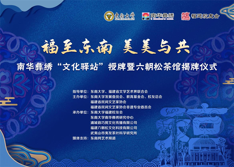 本次活動在東南大學與福建省文學藝術界聯合會指導下,由東南大學發展委員會、教育基金會、校友總會,福建省民間文藝家協會聯合主辦,東南大學福建校友會、浦城縣巧剪文化傳播有限公司、福建六朝松文化科技有限公司、武夷山市夷發茶葉科學研究所共同承辦。活動旨在推動新時代非遺保護和跨省份的地域性非遺的融合創新性發展,在南華彝繡的傳承和弘揚、以及鄉村振興上更進一步,實現非遺之美的活態傳承與疊加融創。