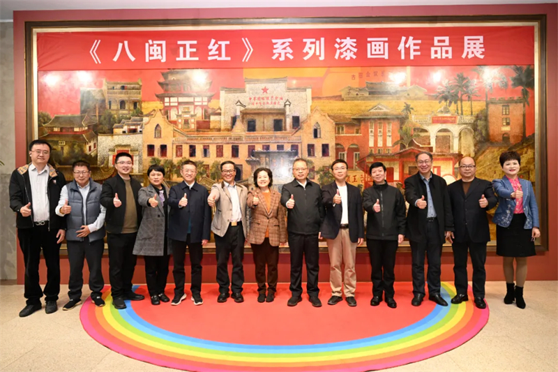 12月7日,由福建省委黨史方志辦、福建省文學藝術界聯合會主辦,福建省革命歷史紀念館、福建省民間文藝家協會承辦,閩江學院、福建省黨外知識分子聯誼會協辦的《八閩正紅》系列漆畫作品展覽在福建省革命歷史紀念館開幕。