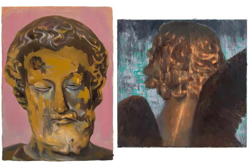 《閉眼雕像》(左) 24x33cm 木板油畫 2023年