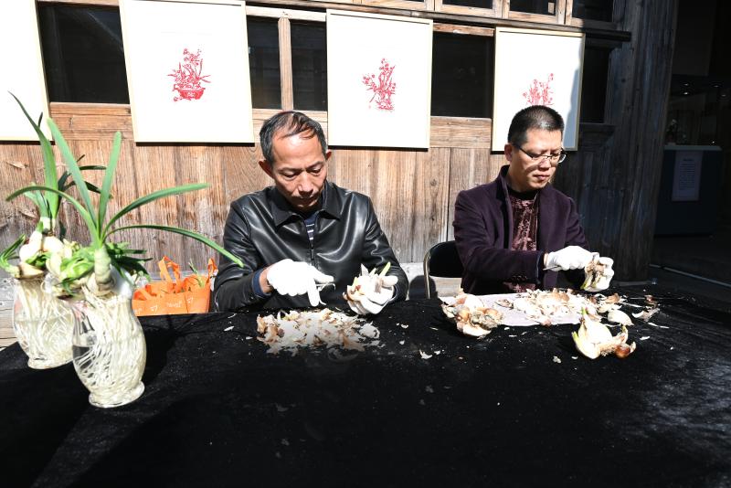 此外,花匠們還在現場展示了水仙花雕刻技藝,這些精心雕刻的水仙花造型精美,極具觀賞性,散發著淡淡的清香,引得游客們紛紛駐足觀賞,拍照留念。