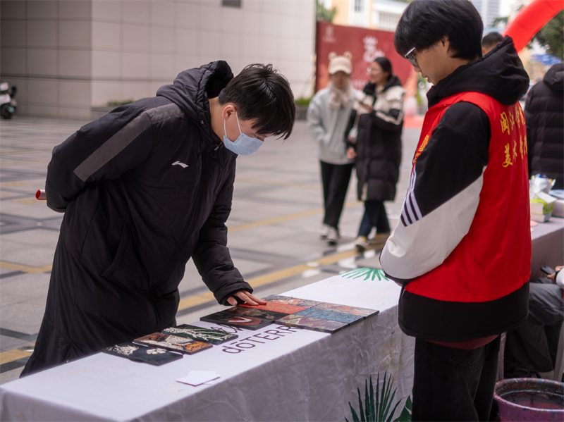 本屆文創集市精彩展示美院學子的漆畫、漆工藝作品,還有篆刻、雕塑及各類平面文創佳作。現場還可體驗漂漆制作,收獲新春祝“福”,感受福漆文化的獨特魅力。同學們將課堂所學技能運用到實際創作中,展示藝術作品,弘揚傳統文化,推動創新創業創造,同時豐富校園文化生活,提升藝術鑒賞能力。“希望通過這樣的活動,讓更多人了解美術學院的教學成果,感受藝術的魅力與價值”,美術學院院長金暉表示。