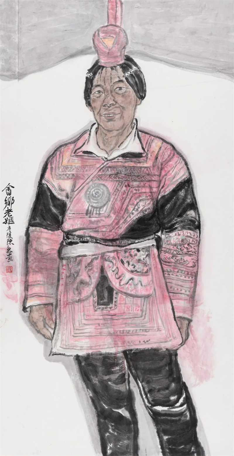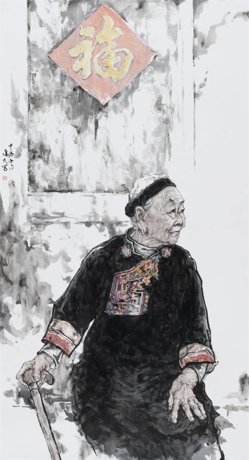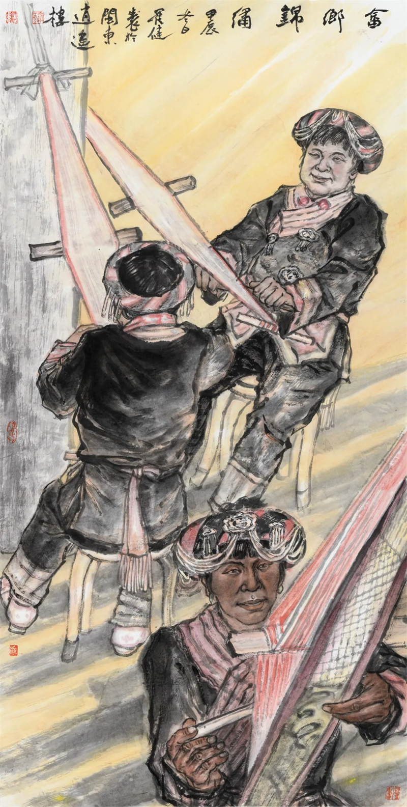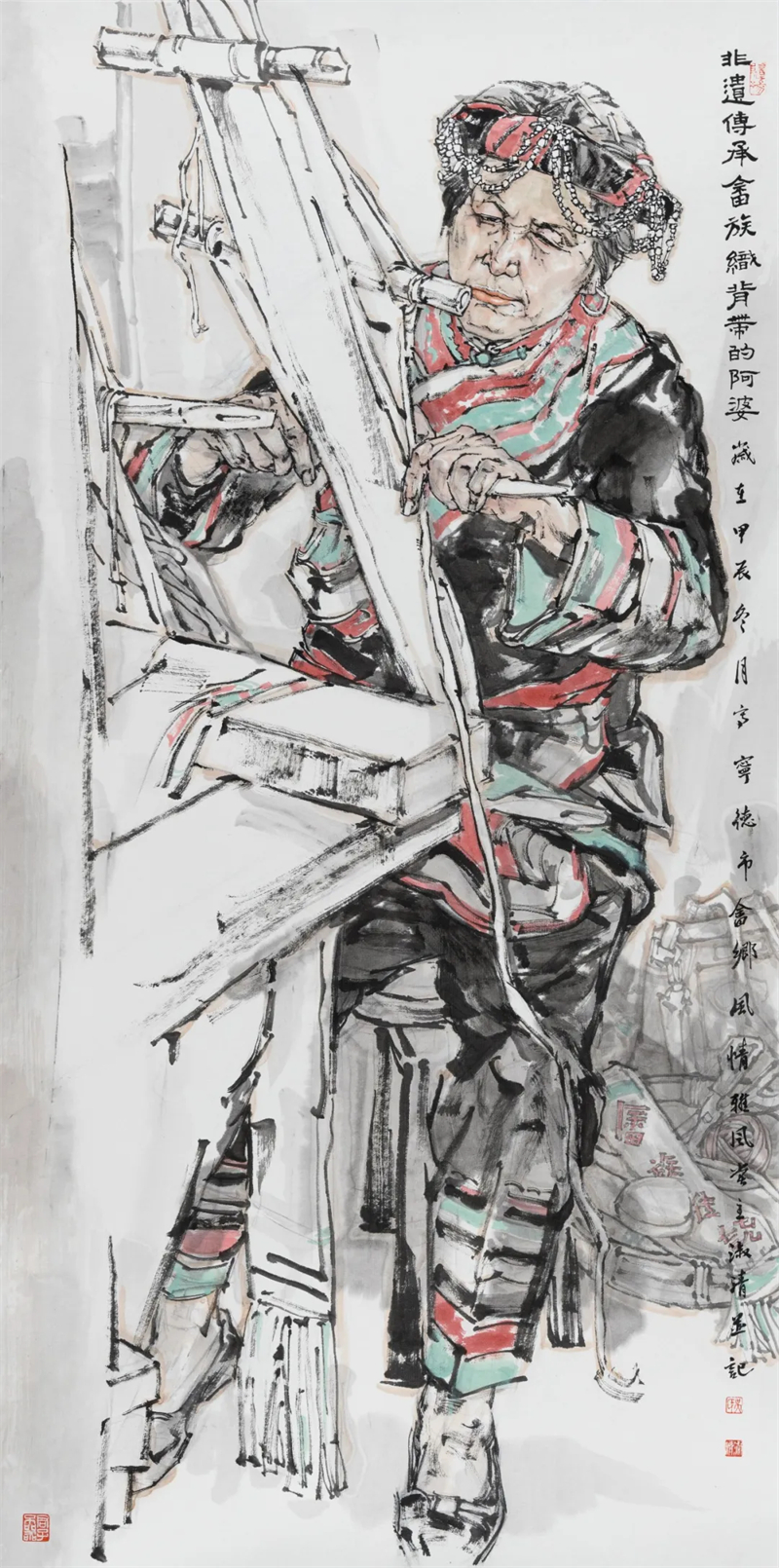 《非遺傳承畬族織背帶的阿婆》 138cmX69cm