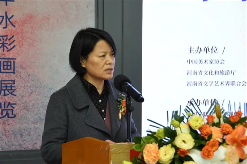 中國(guó)美協(xié)副主席、河南省美協(xié)主席劉杰,中國(guó)文聯(lián)美術(shù)藝術(shù)中心常務(wù)副主任李偉,河南省文旅廳黨組成員、副廳長(zhǎng)王飛,河南省文聯(lián)黨組成員、副主席李明,中國(guó)美協(xié)水彩畫(huà)藝委會(huì)主任、黑龍江省文聯(lián)副主席、黑龍江省美協(xié)主席趙云龍,河南省美術(shù)館黨支部書(shū)記、館長(zhǎng)董繼武共同為展覽啟幕。參加開(kāi)幕式的還有中國(guó)文聯(lián)美術(shù)藝術(shù)中心藝委會(huì)工作處副處長(zhǎng)賀絢絢,河南省文旅廳藝術(shù)處處長(zhǎng)黃寒秋,河南省美協(xié)副主席兼秘書(shū)長(zhǎng)陳文利,以及中國(guó)美協(xié)水彩畫(huà)藝委會(huì)成員、河南省美協(xié)、河南相關(guān)美術(shù)院校等單位的領(lǐng)導(dǎo)嘉賓和入選作者代表等。開(kāi)幕式由河南省美術(shù)館副館長(zhǎng)郭黎蒞主持。