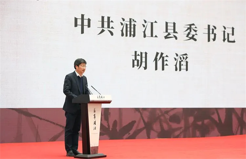 胡作滔在致辭中指出, 一直以來,浦江縣委、縣政府都非常重視書畫文化的傳承與發展,在建設書畫陣地、舉辦書畫盛會、創新書畫藝術、推動書畫研學、培養書畫后人等方面持續發力,先后建成了吳茀之紀念館、方增先書畫碑刻院、山明美術院、月泉書院、仙華文景園等一批書畫文化設施,攜手中國美協連續十年舉辦“萬年浦江”全國中國畫作品展。浦江將堅決扛起傳承和發展中華優秀傳統文化的時代重任,進一步堅定文化自信、扛起使命擔當,賡續文脈、守正創新,持續推動書畫事業和書畫產業的高質量發展。