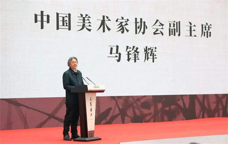 馬鋒輝代表中國美協致辭,他指出“萬年浦江”全國中國畫作品展自2014年起,在浦江中國書畫節中作為主要的文化項目,已經成功舉辦了十一屆,展覽推出了一批優秀美術作品,推介了一批青年美術人才,是現今美術界一個重要的中國畫交流和展示平臺,得到了社會的廣泛關注,在全國美術界具有很大的影響力。此次展覽不僅是參與人數多,而且展出作品以鮮明的主題、真摯的感情、多元的風格、豐富的題材、大膽的創新,有力提升了展覽質量。新時代新征程,我們要擔負起新時代新的文化使命,在宏闊的文化格局中領悟和研究傳統藝術,創造時代藝術,在繼承傳統正脈的基礎上,銳意創新,用多彩的藝術推動中華優秀傳統文化創造性轉化、創新性發展;要在弘揚民族精神中推進文化自信自強,強調民族藝術是民族精神的結晶,以藝術塑造靈魂,為推進中華民族偉大復興提供價值引導力、文化凝聚力和精神推動力。感謝浦江縣委、縣政府,我們也期望浦江充分發揮獨特的書畫文化優勢,充分利用豐厚的書畫資源積累,促進文化產業與文化事業同生,經濟效益和社會效益共贏。