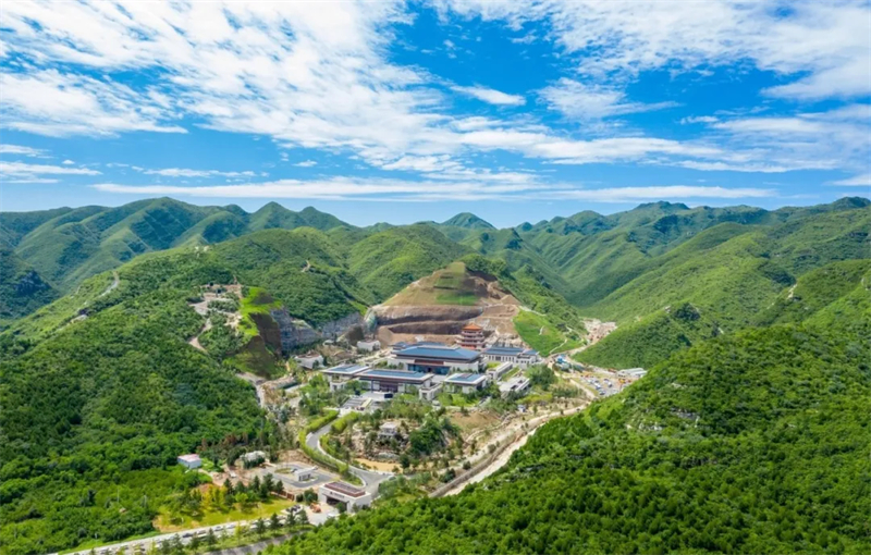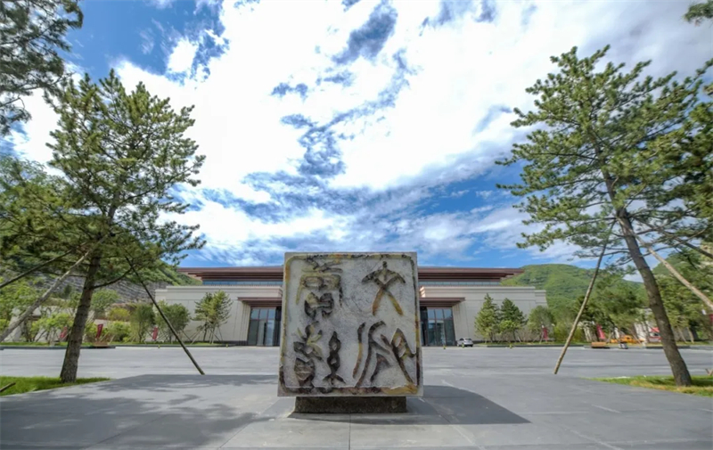 中國國家版本館中央總館依山而建,三面環山,主體建筑突出,在藍天白云掩映下,與自然風光融為一體。