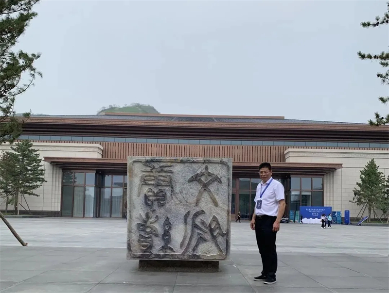 陳禮忠與巨型印章《賡續文脈》合影