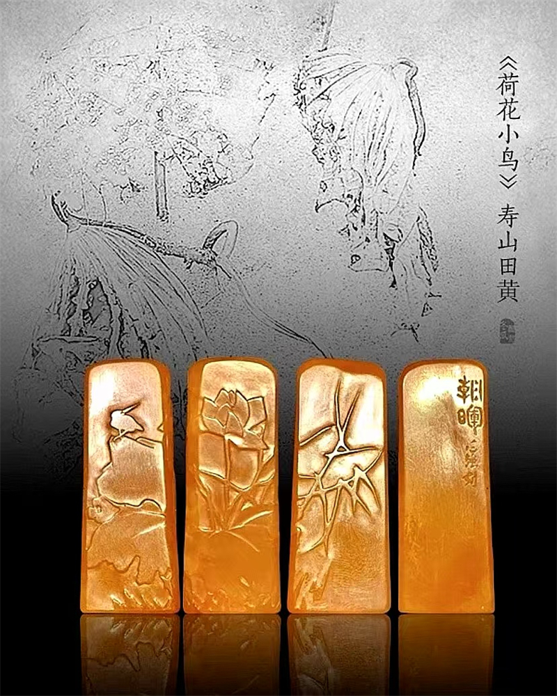 《荷花小鳥》壽山田黃石