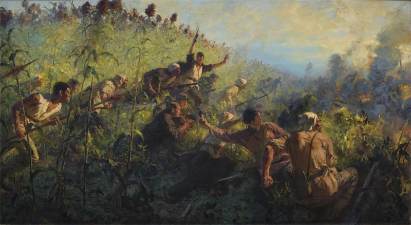 《青紗帳里游擊隊(duì)員逞英豪》 韋啟美 布面油畫(huà)