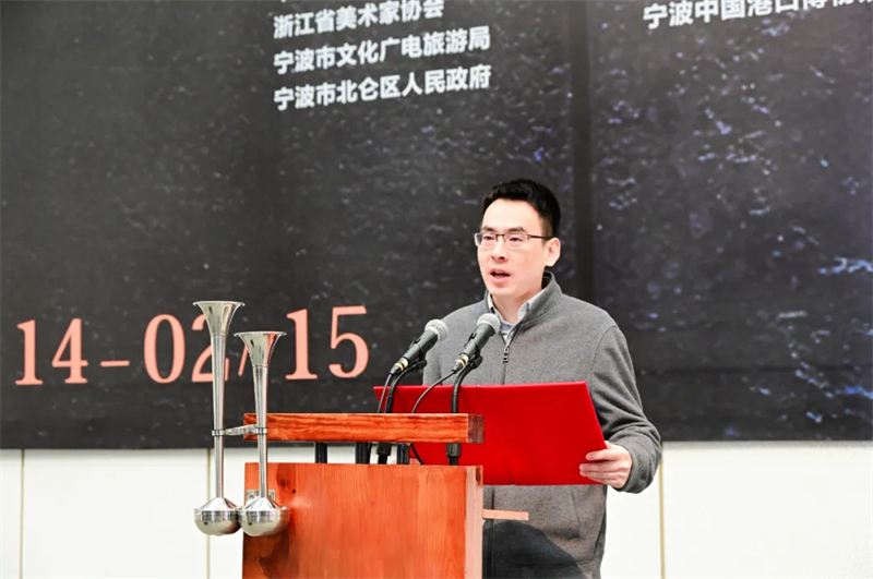儲楊洋在歡迎詞中介紹了寧波北侖一方面致力于經濟社會高質量發展,同時重視文化事業的繁榮與創新,以漆畫藝術為突破口,打造特色文化品牌項目。通過開展漆畫藝術講座、創作高研班、藝術采風、展覽導讀等多層次活動,不斷為藝術家提供成長平臺和創作資源,為推動漆畫藝術在全國范圍內的傳播與發展貢獻力量。