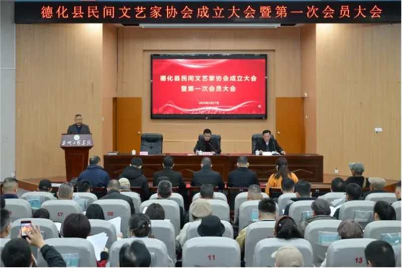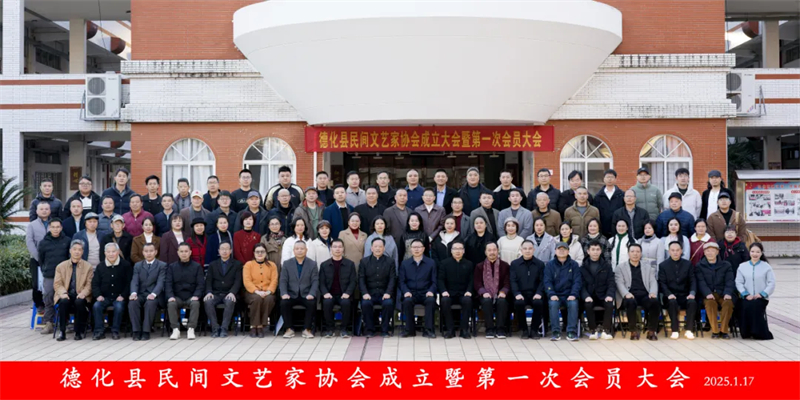 2025年1月17日,德化縣民間文藝家協會成立暨第一次會員大會在泉州工藝美術職業學院召開。德化縣委常委、宣傳部部長黃世興,福建省民間文學交流中心主任、泉州市民間文藝家協會主席陳華發出席會議并講話,德化縣文聯、德化縣民政局等領導嘉賓參加會議。會議選舉產生第一屆理(監)事會,李甲棧當選德化縣民文協主席,徐建勇當選監事長,葉志向當選執行主席,張朝榮、曾慶成、盧華禹、吳志勇、林靈月、鄭建忠當選副主席,張朝榮當選秘書長(兼)。