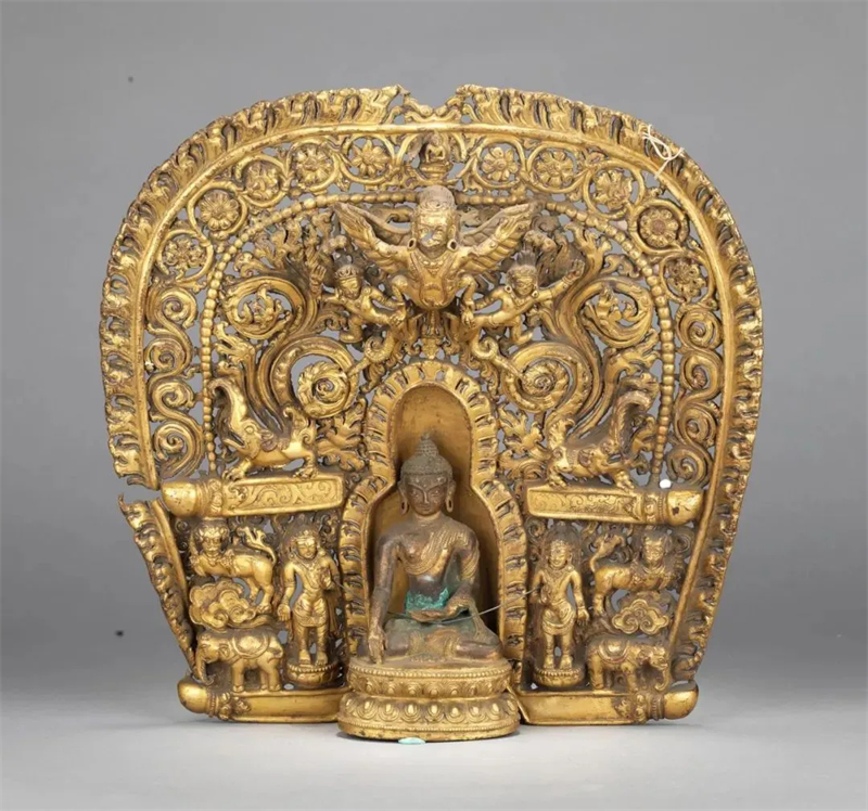 銅鎏金背屏式釋迦坐像 明中期式樣 中央美術學院美術館藏