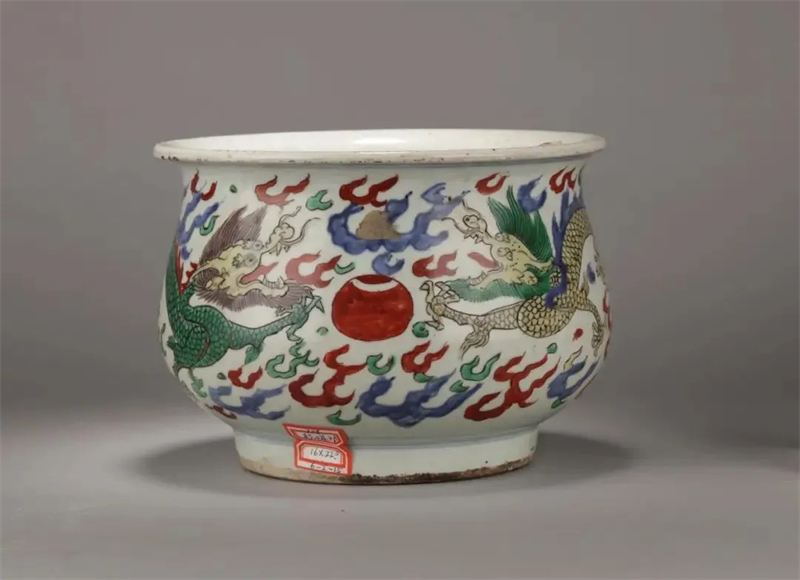 五彩雙龍戲珠紋爐 清 中央美術學院美術館藏