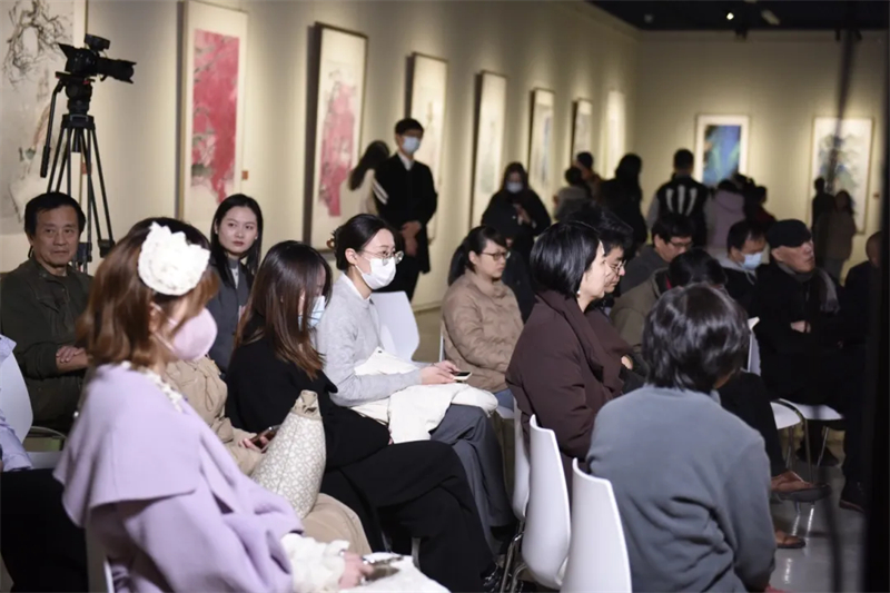 林公翔對此次的展覽名稱“閩韻宏深”進行了解讀,還特別提到了AI時代對工筆畫的沖擊,他鼓勵年輕畫家深入思考如何在新時代背景下保持工筆畫的獨特魅力,積極探索工筆畫與AI技術的融合之道。