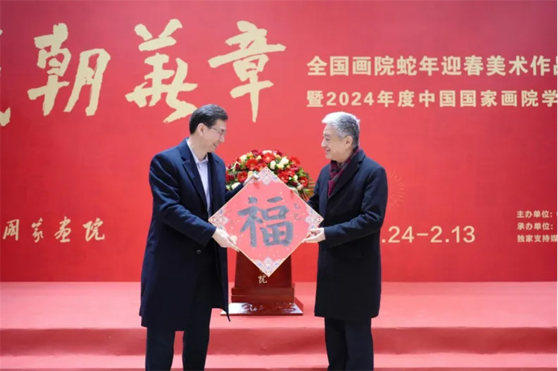 徐漣表示,本次展覽以“歲朝華章”為主題,匯集了全國畫院有代表性的藝術家和中國國家畫院藝術家們甲辰龍年的精心之作,展示了2024年中華人民共和國成立75周年所取得的美術創作成果;同時在喜迎乙巳蛇年新春的歲朝伊始,邀請美術界的前輩、全國畫院的同仁歡聚一堂、迎祥納福。展覽也包含了一年一度的中國國家畫院學術作品展,是對過去一年的總結與展示,更是對未來藝術創作的一次探討與展望。此次展覽恰逢春節假期,體現了中國國家畫院以藝術展覽服務大眾,踐行習近平總書記在2025年新年賀詞中提出的“家事國事天下事,讓人民過上幸福生活是頭等大事”的具體舉措。