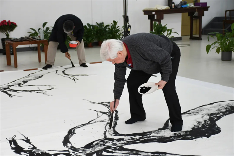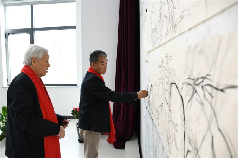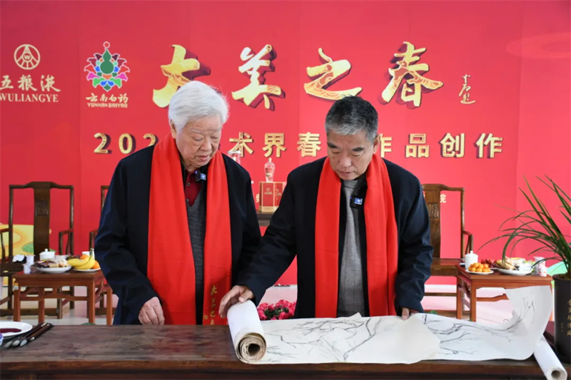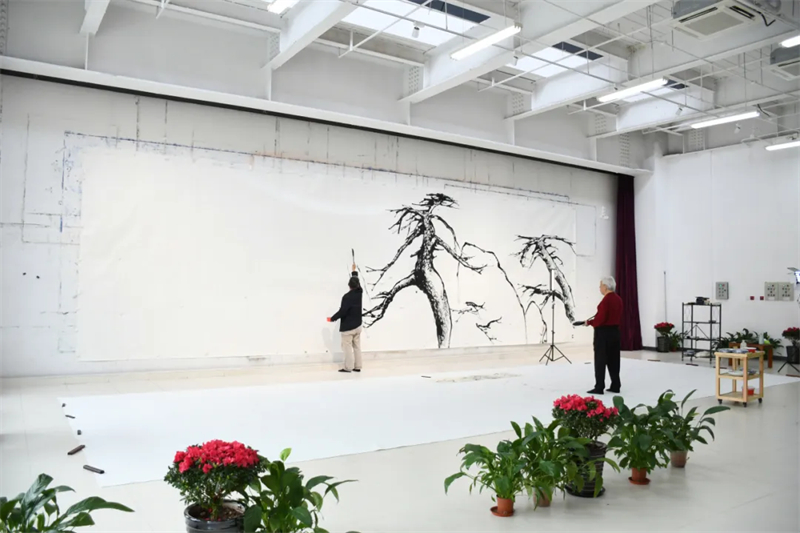 早在本屆“大美之春”正式舉辦前一個(gè)月,兩位藝術(shù)家就已經(jīng)開始投入創(chuàng)作。他們不僅是當(dāng)今中國畫壇極具代表性的實(shí)力派領(lǐng)軍人物,更是心有靈犀的師徒;他們以當(dāng)代筆墨融合當(dāng)代精神,表達(dá)宏大開闊、積極向上的時(shí)代氣息,共同詮釋本屆盛會(huì)“春風(fēng)十萬里”的時(shí)代主題。