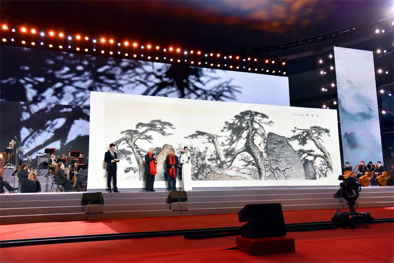 春風(fēng)十萬里——2025年大美之春美術(shù)界春節(jié)交響音樂會(huì)在京隆重舉行,晚會(huì)現(xiàn)場,由著名畫家、中央美術(shù)學(xué)院教授張立辰,中央美術(shù)學(xué)院中國畫與書法學(xué)院院長、中國畫學(xué)院創(chuàng)研部主任岳黔山聯(lián)袂創(chuàng)作的十一米國畫巨制《高風(fēng)頌》驚艷亮相、震撼全場,為全國人民送上了新春佳節(jié)的美好祝福!