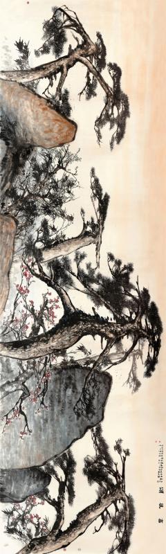 張立辰、岳黔山兩位藝術(shù)家認(rèn)為,松、竹、梅最能體現(xiàn)中國人民堅(jiān)忍不拔的意志品格,也最能展示當(dāng)今中國的時(shí)代氣象。作品中的松樹蒼勁挺拔、顧盼有姿,展現(xiàn)了中國人民在戰(zhàn)勝艱難困苦中攜手共進(jìn)的團(tuán)結(jié)精神與頑強(qiáng)不屈的傲人品格;作品中的巨石昂然屹立,展現(xiàn)了中華民族生生不息、永遠(yuǎn)向上的風(fēng)骨;作品中的梅花則表達(dá)了人民對(duì)幸福生活的美好向往。這幅作品充分展現(xiàn)了兩位藝術(shù)家的精湛技藝和超卓水準(zhǔn),為本屆“大美之春”留下了濃墨重彩的一筆。