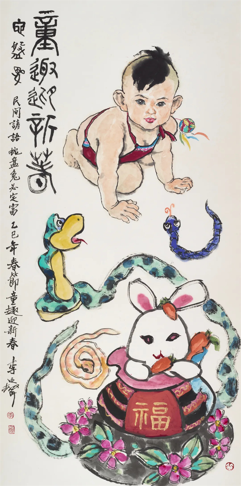【編者按】1月24日,由中國國家畫院主辦、中國國家畫院創研規劃處承辦的“歲朝華章——全國畫院蛇年迎春美術作品邀請展暨2024年度中國國家畫院學術作品展”在中國國家畫院美術館西院展區、東樓展區(一層、三層)啟幕。展覽共計展出400余件作品,涵蓋中國畫、書法、油畫、版畫、雕塑及綜合畫種等多種藝術形式。這些作品不僅包括了全國名家受邀創作的佳作,還匯聚了來自全國30多家省市畫院、高校及藝術機構300余位藝術家的優秀作品,同時展出了約100件書法作品,滿載著對新春佳節的美好祝愿。展覽以傳統春節為契機,以美術創作為載體,展現中國傳統文化的內涵和時代魅力,為觀眾帶來一場充滿年味與藝術氣息的視覺盛宴。即日起,我們將陸續刊發展覽作品,以饗讀者。