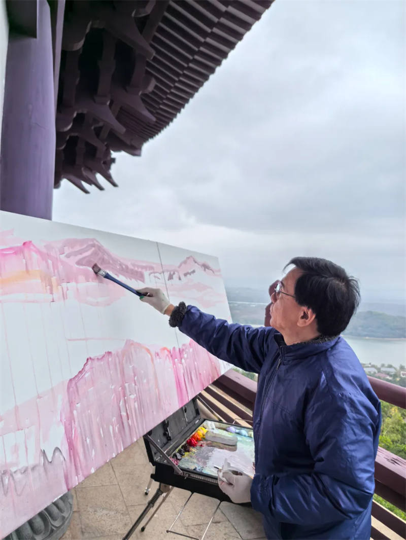 登上儋陽樓,極目遠眺,氣象萬千。畫家們潑墨揮毫,筆端含情,開始繪出一幅幅動人畫卷。參加寫生的國內著名畫家有:北京當代中國寫意油畫研究院院長王輝,中國美協理事、中國美協壁畫藝委會主任王穎生,中國美協漆畫藝委會主任陳金華,中央民族大學二級教授、博士生導師殷會利,中國文聯全委、中國美協理事、廣東省美協副主席梁宇,中央美術學院學術委員會副主任張路江,中央美術學院藝術管理與教育學院院長余丁,中國美協理事、中國畫藝委會秘書長夏荷生,一級美術師、中國油畫學會理事陳樹東,杭州師范大學教授、碩士導師李成民。