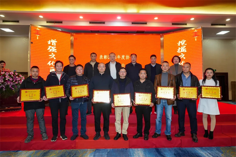 會議對優秀單位及先進個人進行了表彰。一年來,各副會長單位及會員單位充分發揮行業主力軍作用,為推動壽山石行業發展作出重要貢獻。特別是在國家級展覽"閩都巧藝——福州傳統工藝美術晉京展"籌辦過程中,田石齋、賞石齋、壽山會館、福建省榕寶軒藝術館、福州雕刻工藝品總廠、福州薈文石館、良玉軒、匠億軒、福州市壽山石行業協會秘書處等9家單位表現突出,協會特授予通報表彰。同時,對田麗萍、徐一樺、葉鐘、陳靜文等4名先進工作者予以表彰。