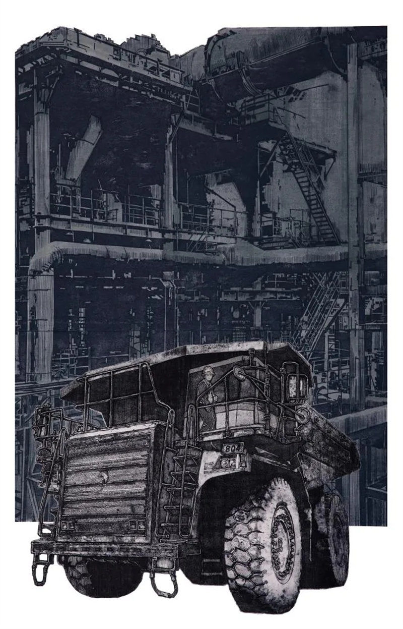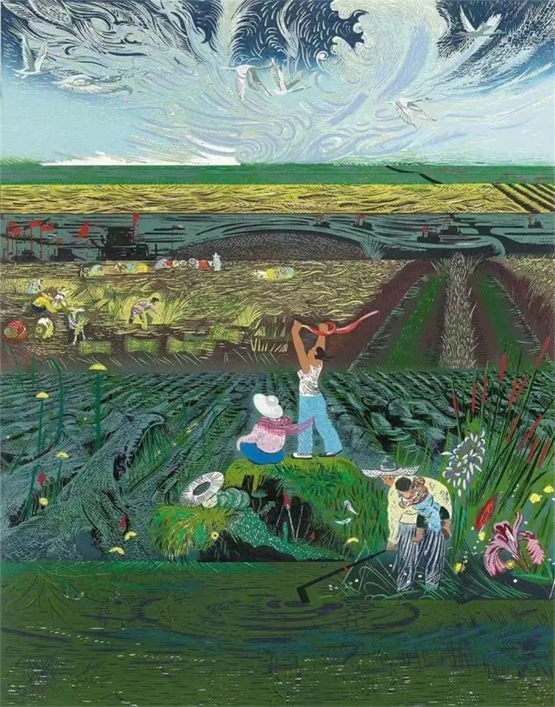 陳瑜婷 機耕興農圖 水印木刻 2018年