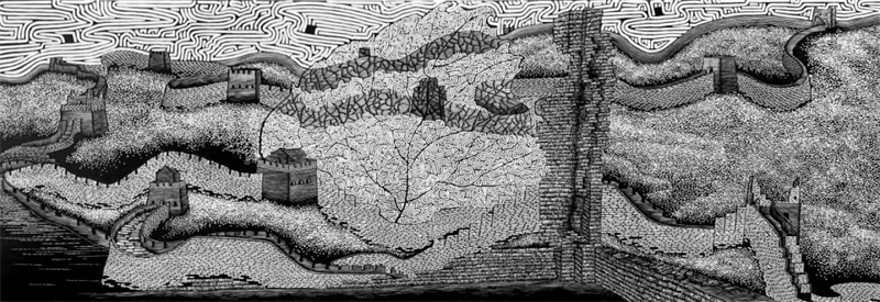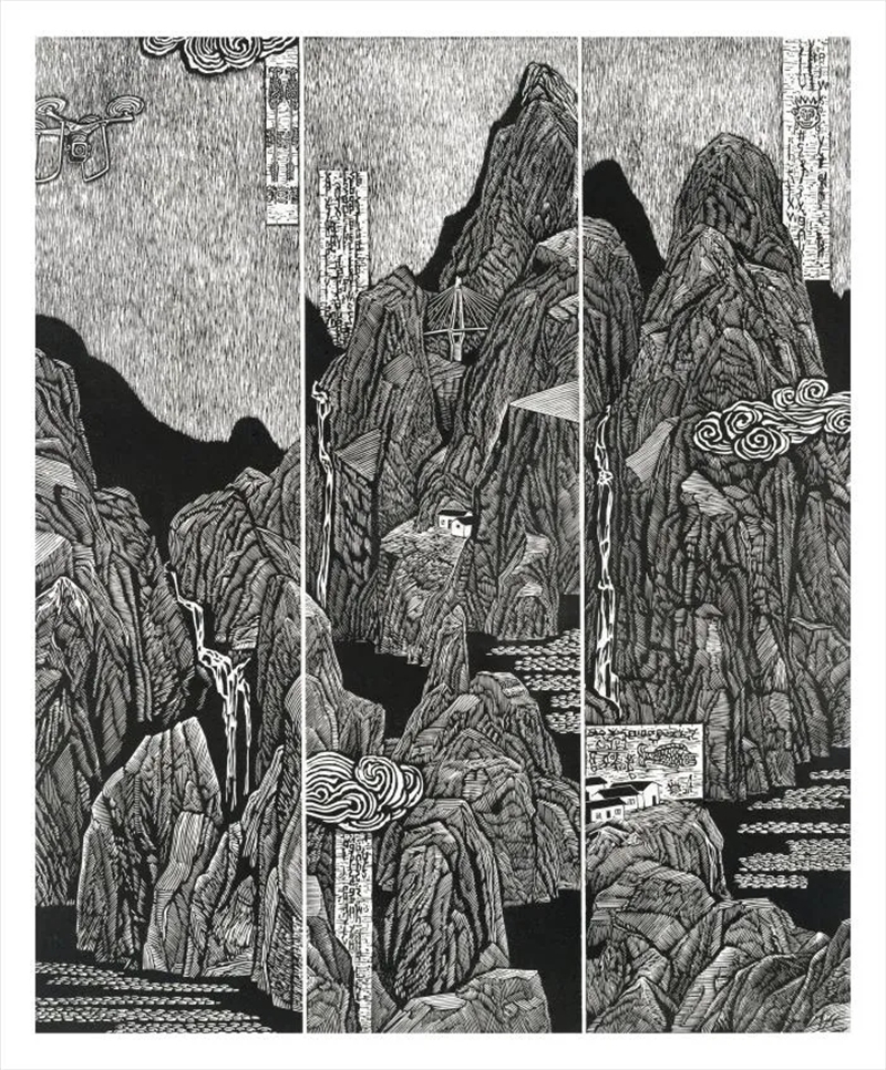 劉艷飛 印象長城之二 黑白木刻 2020年