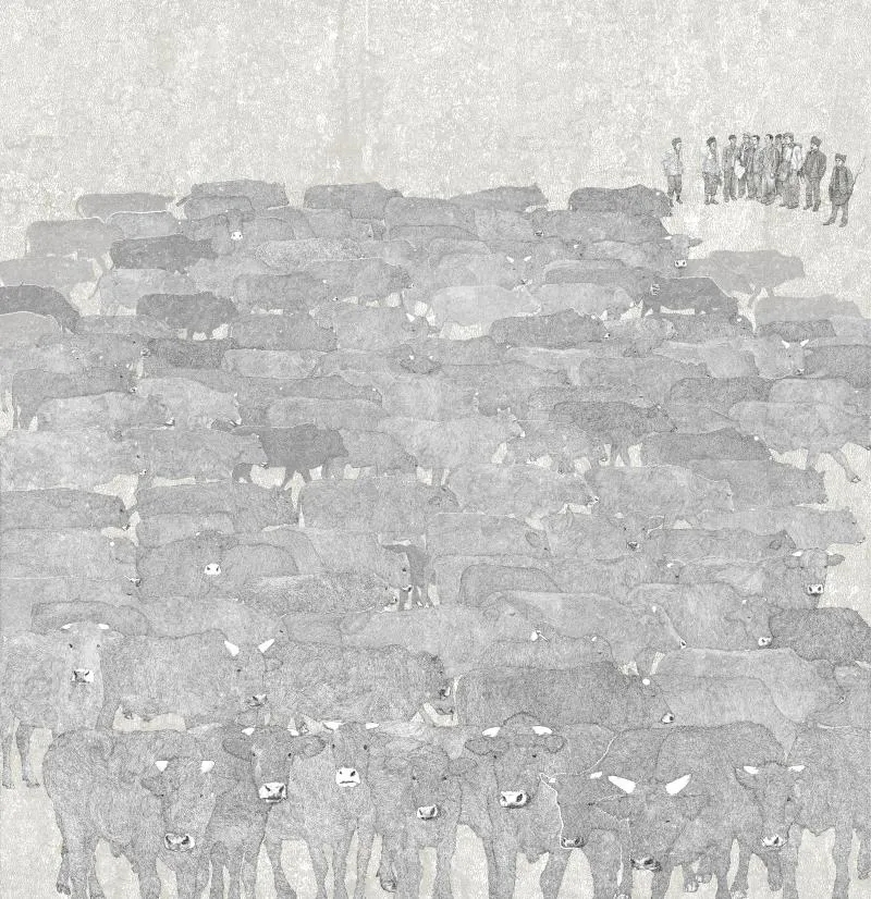 吳靜秋 荒原奔騰 套色木刻 2015年