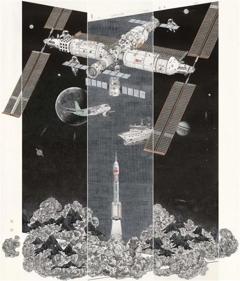 徐那 逐夢寰宇問蒼穹 木口木刻 2024年