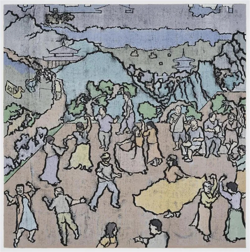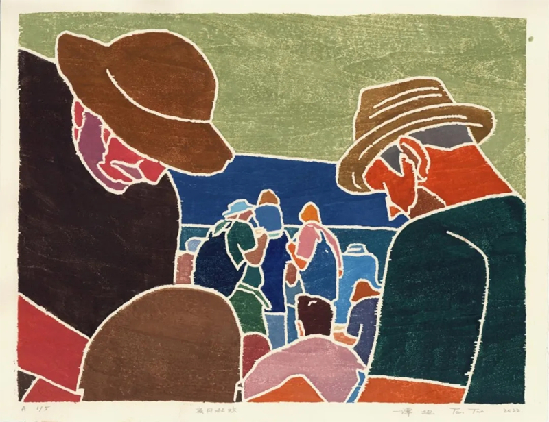 張春霞 興慶宮的周末舞會之七 套色木刻 2024年