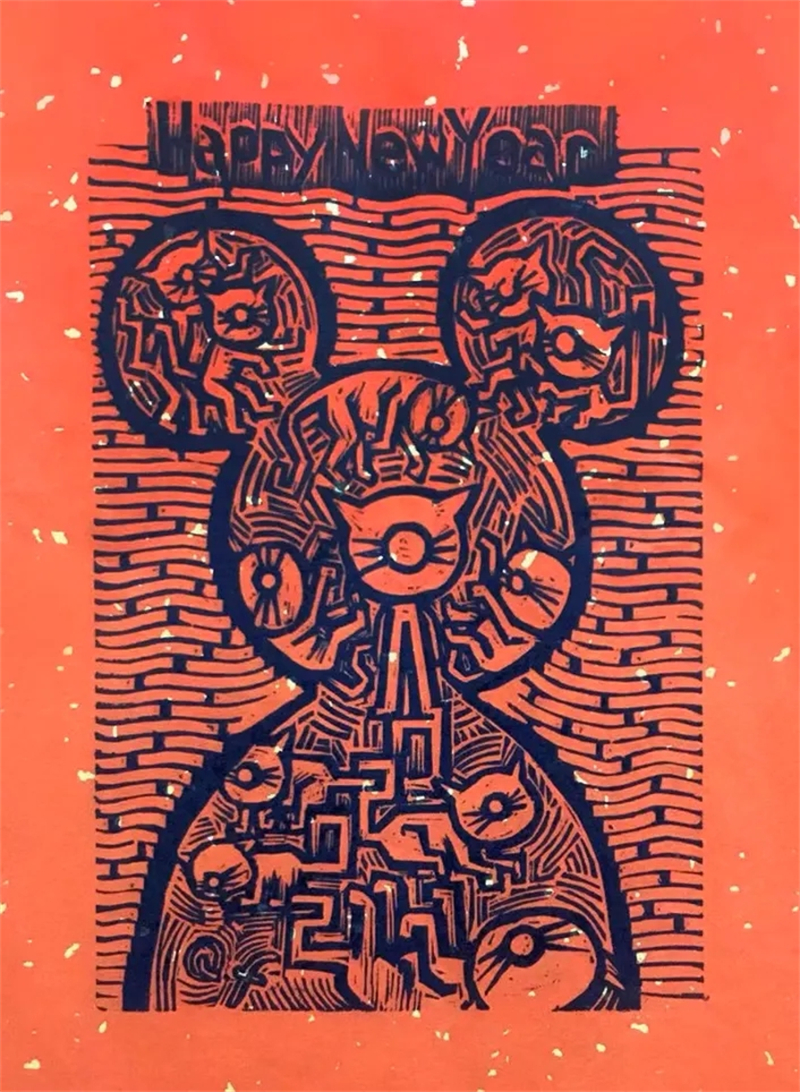朱珂橙 Tied a loop lll 水印木刻 2020年