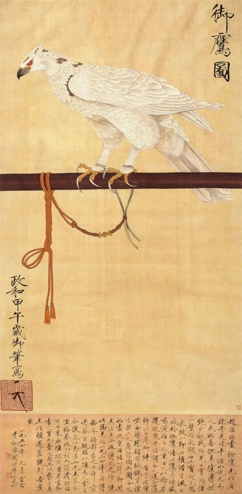 于非闇 臨傳北宋趙佶《御鷹圖》絹本設色 165cm×80.5cm 1954年 北京畫院藏